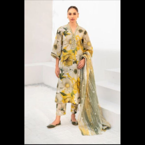 3-Piece Unstitched Naqqashi Apparel Printed EMB Lawn Suit | LBX-2088