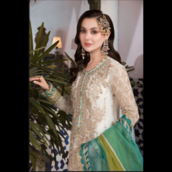- Dupatta on ORGANZA ready to wear Fully Embroidered with EPLIC BUNCHES AND 4 side embroidered border